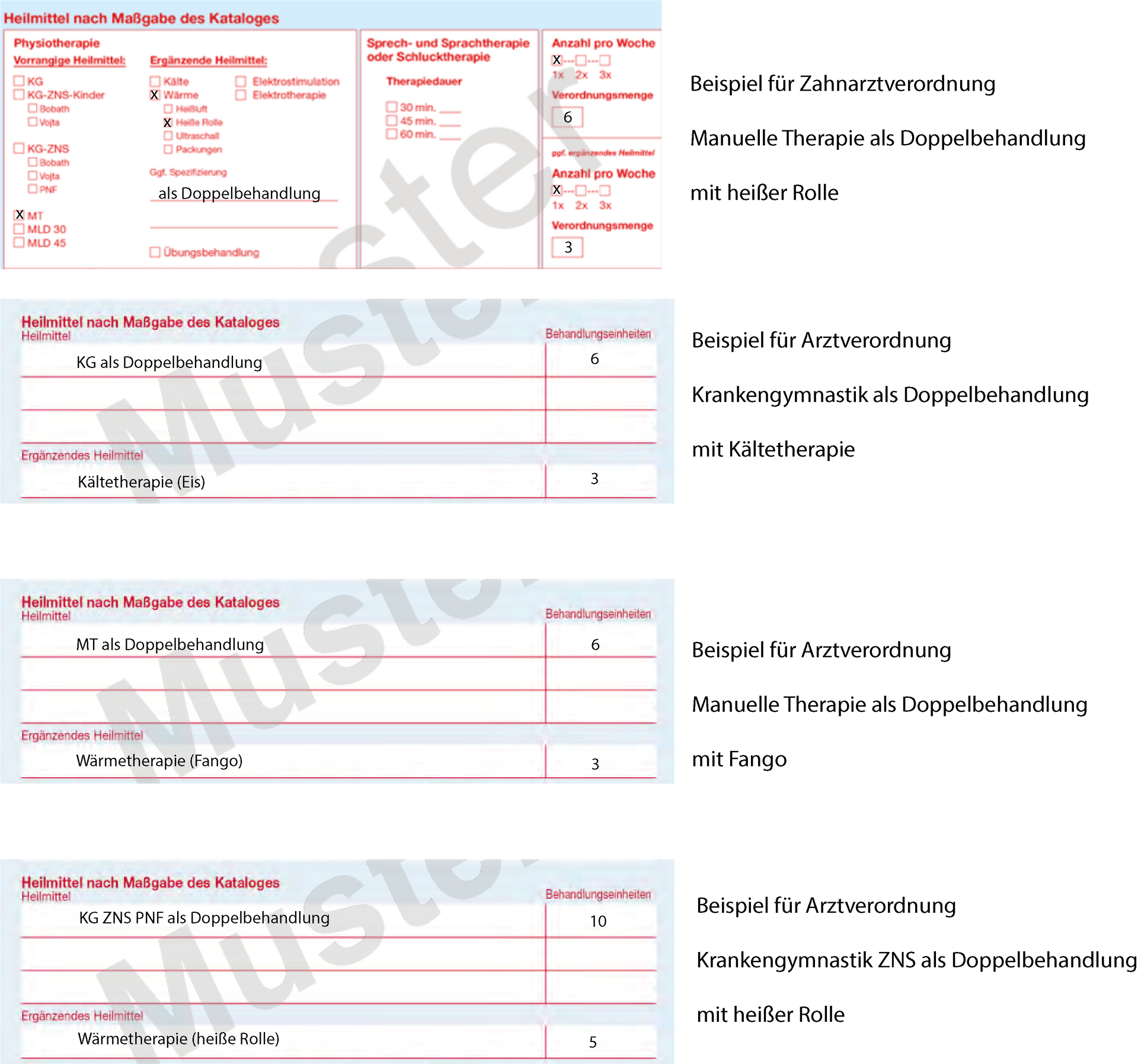 Damit die Doppelbehandlung gültig ist, muss sie bereits auf der Heilmittelverordnung von Ihrer Ärztin oder Ihrem Arzt vermerkt sein. Falls eine Änderung im Nachhinein erforderlich ist, ist es wichtig, dass die Ärztin oder der Arzt die Änderung zusätzlich unterschreibt.